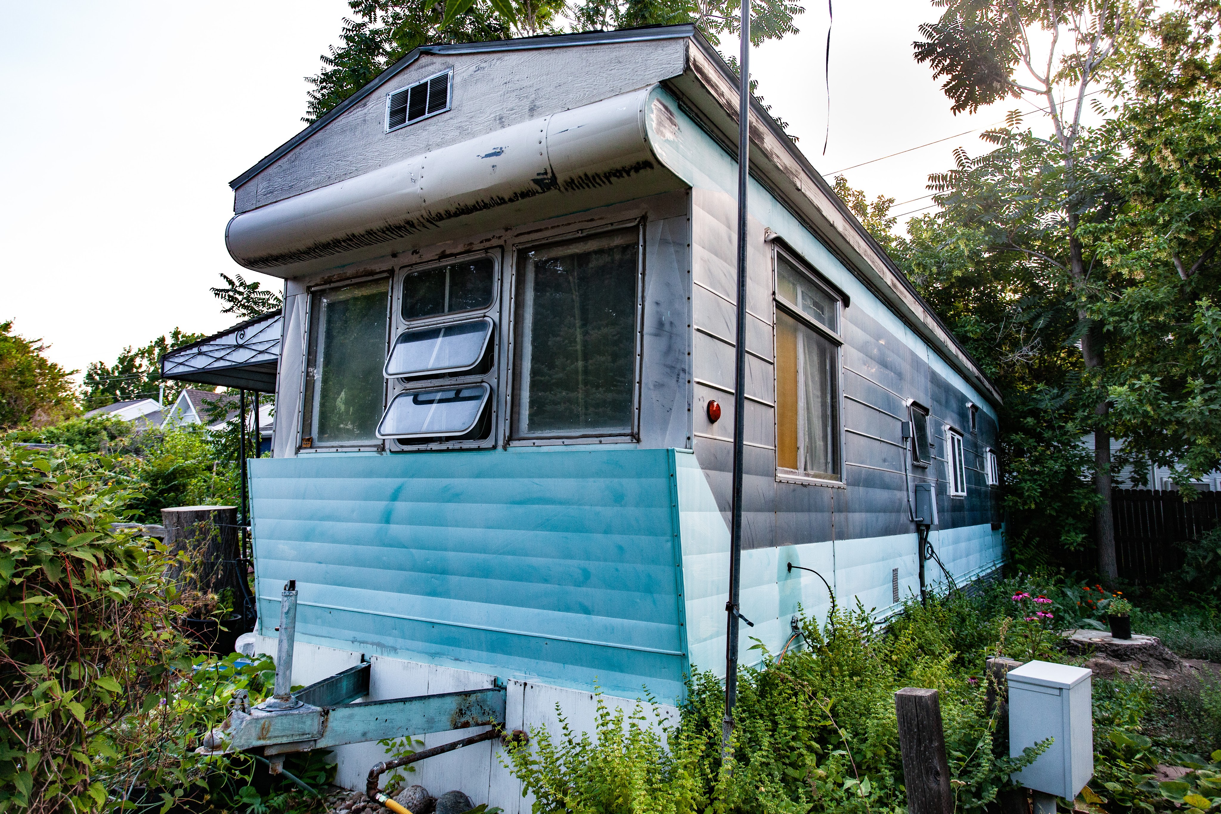 She grew up in Boulder and when she was 21, her dad used some of her college fund to purchase the 8 foot wide, 32 foot long 1957 Mountaineer for $2500.00. She’s lived in the 272 sq. ft. – almost 2 bedroom – mobile home for 41 years. Mobile Home living has allowed Laurie to stay in Boulder, where she grew up.